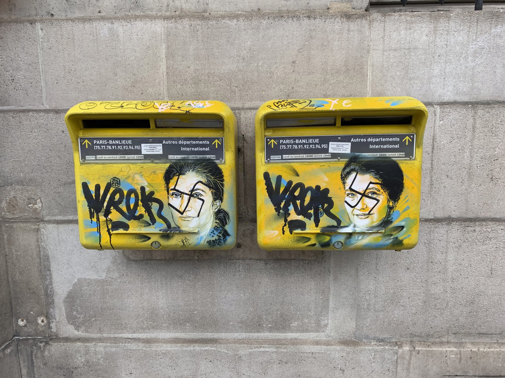 In addition to the desecration of the Ilan Halimi memorial, portraits of the late Simone Veil drawn on mailboxes were daubed with swastikas. A survivor of Nazi death camps and a European Parliament president who died in 2017, Veil also spearheaded abortion rights as one of France’s most prominent female politicians.