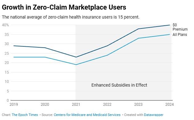 Also, 40 percent of those enrolled in a zero-premium plan in 2024, more than 4 million people, filed no medical claims.