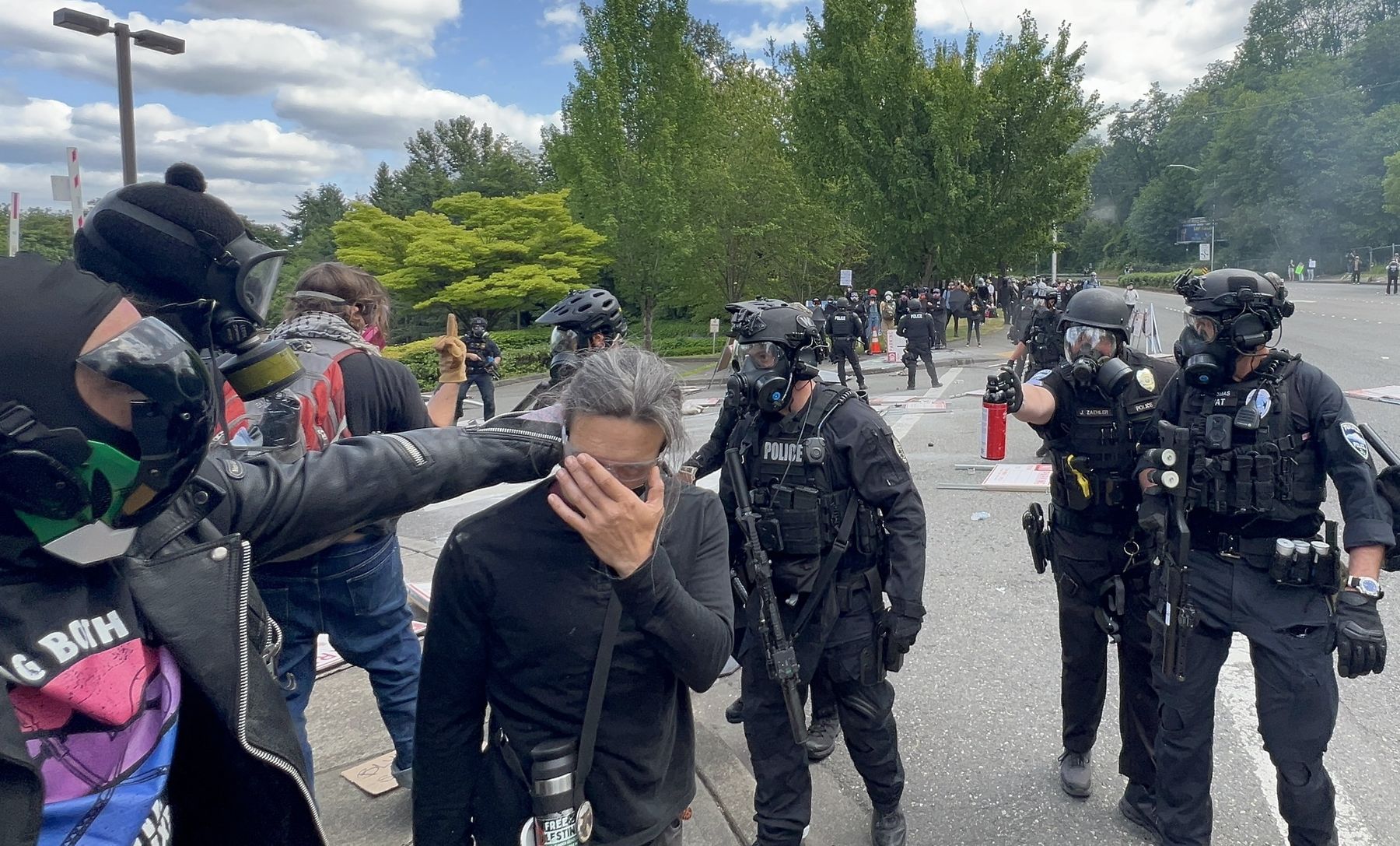 Portland police officers on bicycles and squad cars passed by the scene a few times but did not intervene.