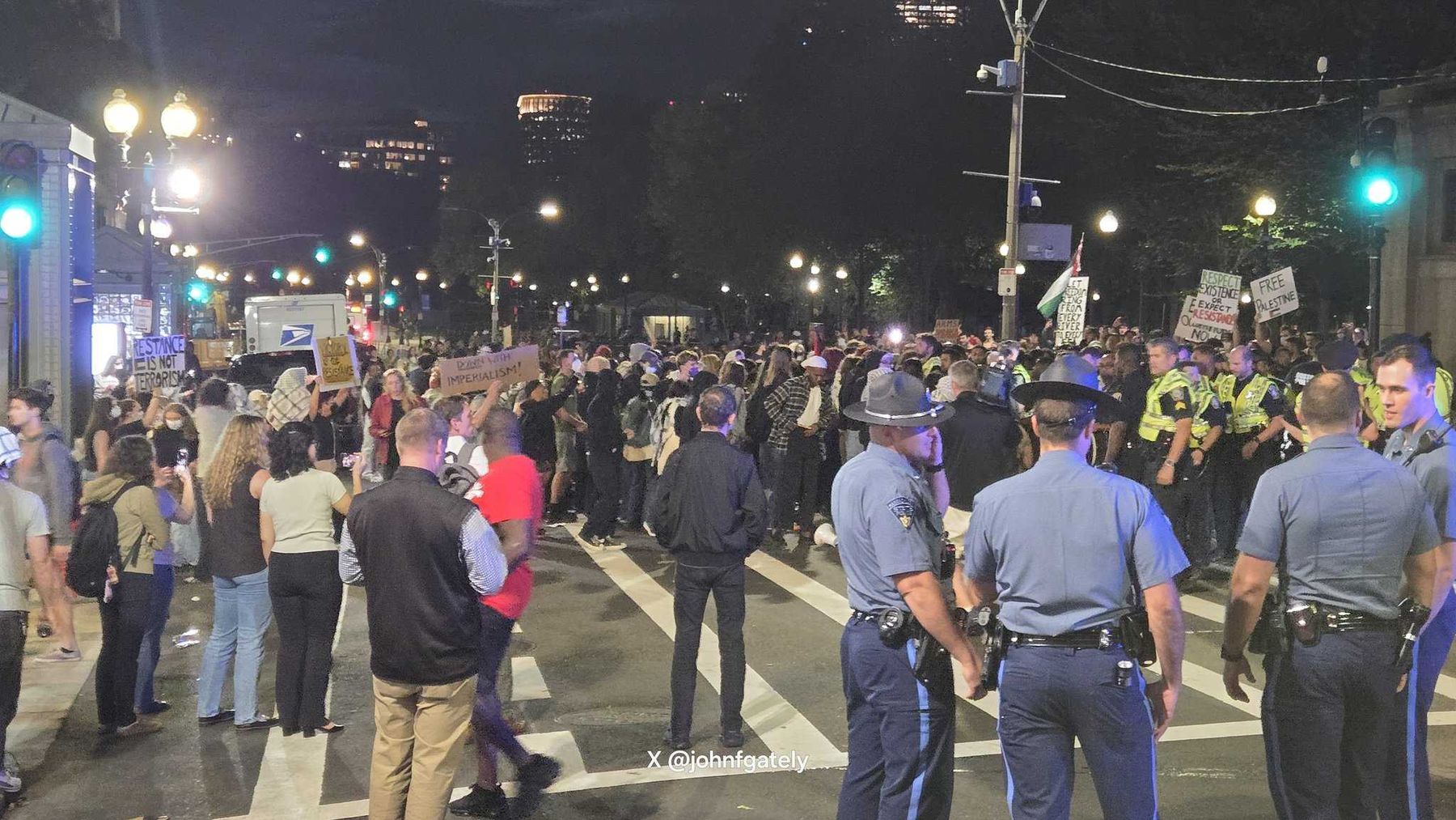 Tensions in the community were already high before Tuesday's demonstration, Gately stated. He explained that a visiting professor from Harvard Law School fired off a pellet rifle near a Brookline synagogue last week on the eve of Yom Kippur. The professor allegedly told law enforcement he was "hunting rats."