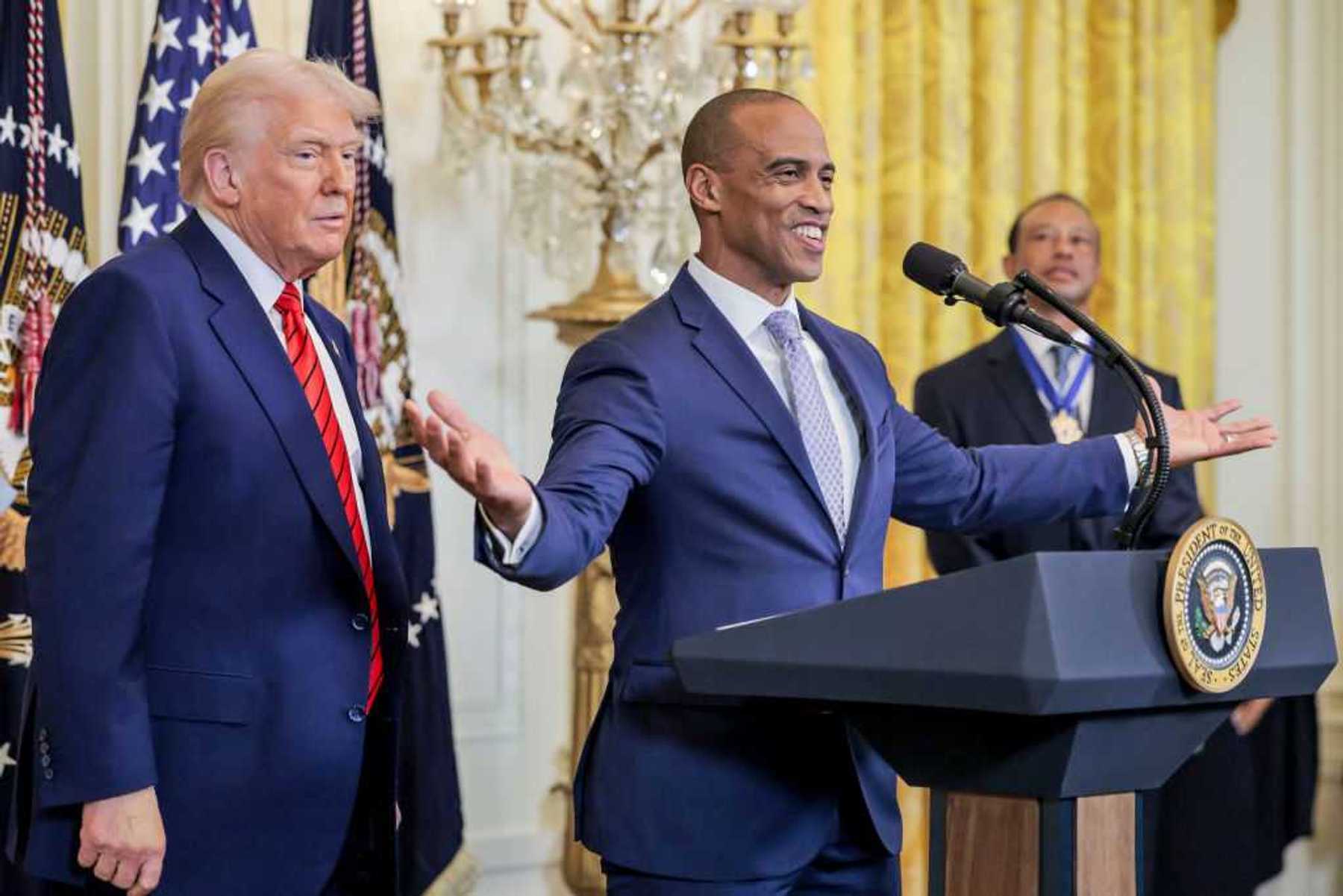 President Donald Trump, HUD Secretary Scott Turner. Photographer: Shawn Thew/EPA/Bloomberg via Getty Images