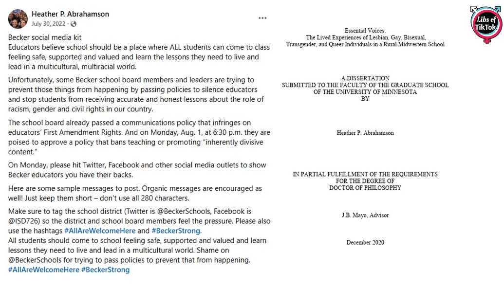 Following the initial report, we discovered MORE information showcasing this teacher’s political activism, which includes promoting social media activist kits and a dissertation paper focused on LGBTQ propaganda.